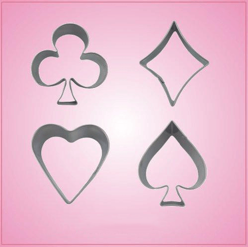 Going to have a full house for your card game? Give your poker buddies something fun to eat with the Small Card Cookie Cutter Set, which contains a 2-inch club, a 2-inch spade, a 1-5/8-inch heart and a 2-inch diamond. All of the cookie cutters are made with stainless steel.  To clean, hand-wash and towel dry. Buy one today, and you'll be the big winner no matter what cards you're dealt!