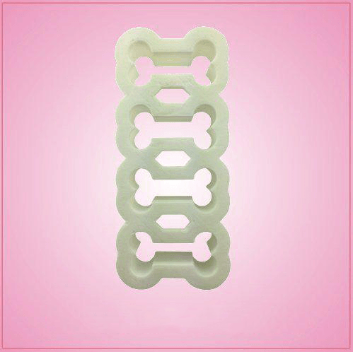 Our Multi Dog Bone cookie cutters are used to cut 4 dog bone shaped cookies at one time! We carry two sizes. On our larger version, each bone measures about 1 inch tall, 3 inches wide. On our smaller version, each bone measures 3/4 inches tall, just under 1-1/2 inches wide. Both are made of white plastic. Cleaning instructions: hand wash, towel dry. Buy your multi dog bone cookie cutter today!