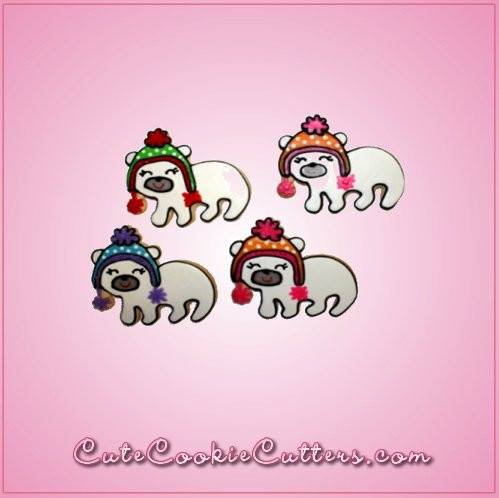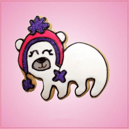 Pink Penny Polar Bear has a cute winter hat. This cookie cutter measures 2.75 inches tall, just over 3 inches wide, just under 1 inch deep and made out of pink plastic. Cleaning instructions: hand wash, towel dry. Buy your pink Penny polar bear cookie cutter today!