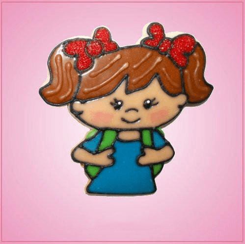 Our Pink Samantha School Girl cookie cutters are approximately 4 inches tall, 4 inches wide, depth 3/4 inch and are made out of pink plastic. Cleaning instructions: hand wash, towel dry. Buy your pink Samantha school girl cookie cutter today!