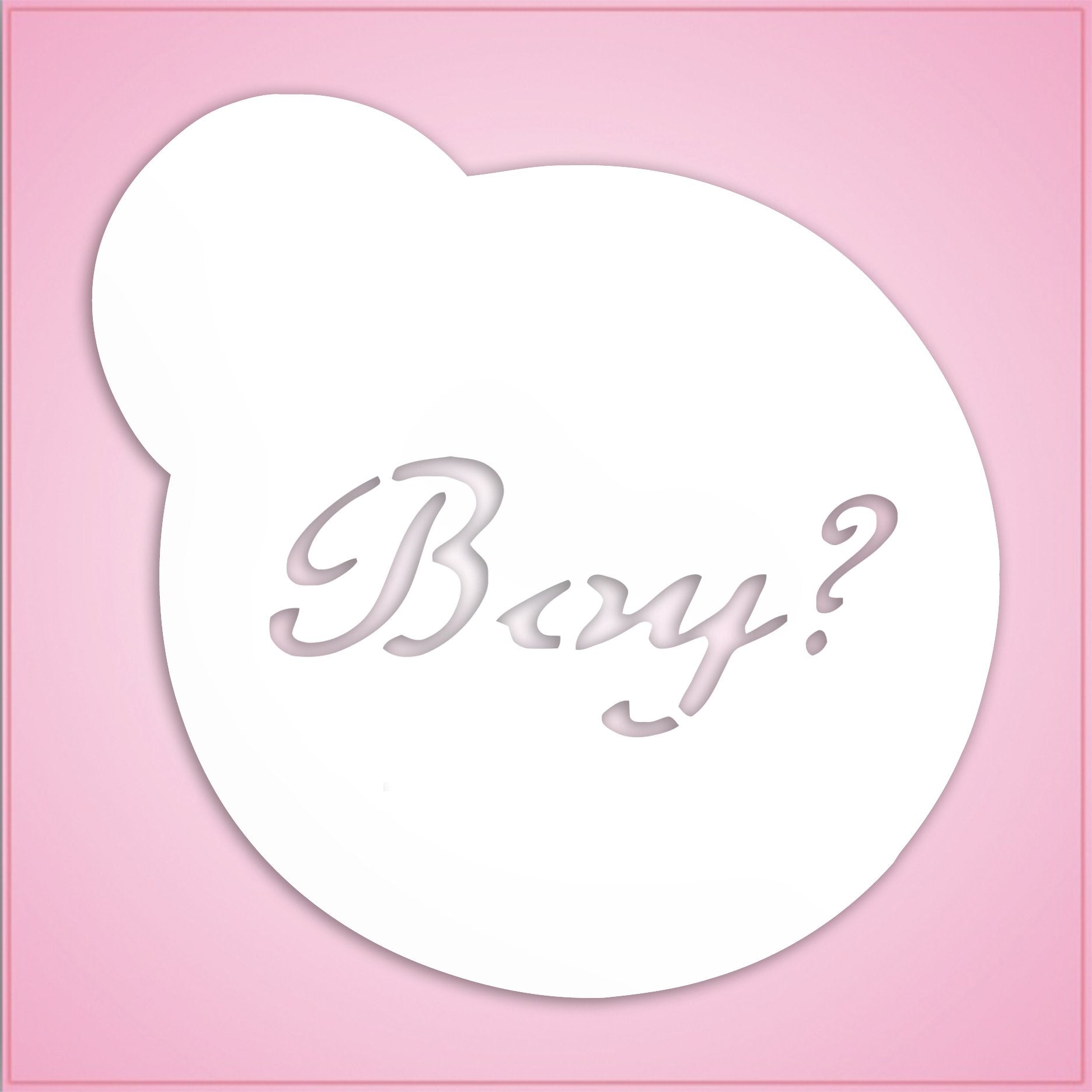 Our Boy Gender Reveal Cookie Stencil features the word Boy in a script font with a question mark ? Perfect for Gender Reveal baby showers! This baby shower design measures about 2.15 inches wide x .75 inches tall. And of course we also have a coordinating Girl Gender Reveal Cookie Stencil!