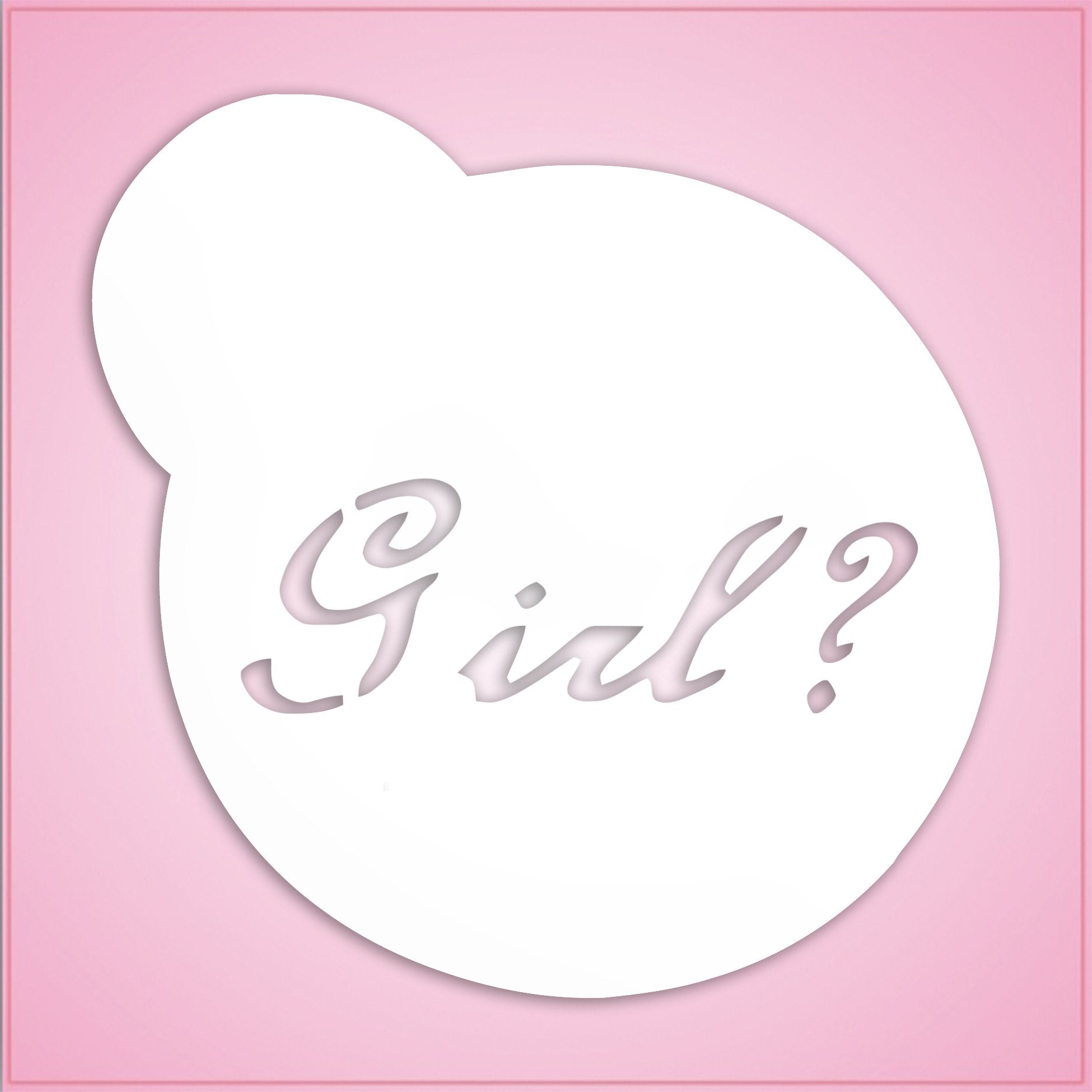 The stencil part of this Girl Gender Reveal Stencil stencil is designed for a 3 inch round cookie. Our stencils are 5 mil thickness which is ideal for decorating cookies. They are also made of a food safe plastic that is FDA approved as being safe for food contact. Cleaning instructions: hand wash, towel dry. Buy yours today!