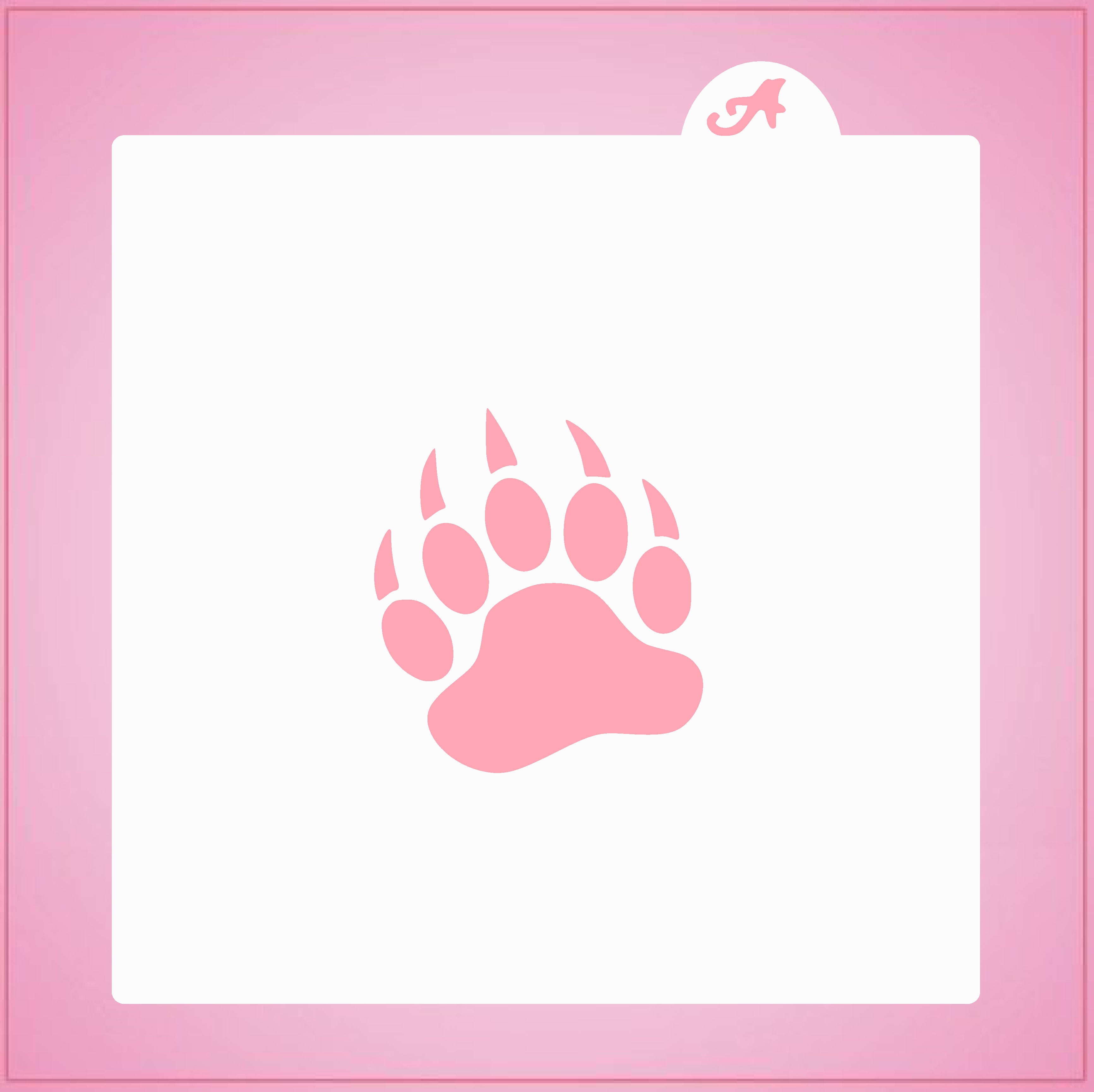 Our Bear Claw Cookie Stencil is made on a 5.5" x 5.5" template. This bear paw design measures about 2 1/4" in size. Use this cookie stencil for decorating winter wildlife themes and more! They are also made of a food safe plastic. Cleaning instructions: hand wash, towel dry. Buy yours today!