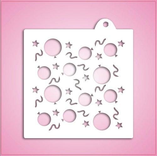 Bake up a party! Our Balloon Confetti Pattern is made on a 5.5” x 5.5” template. This cookie stencil features balloons, stars and confetti streamers. Perfect for birthday parties, New Years Eve celebrations and more!