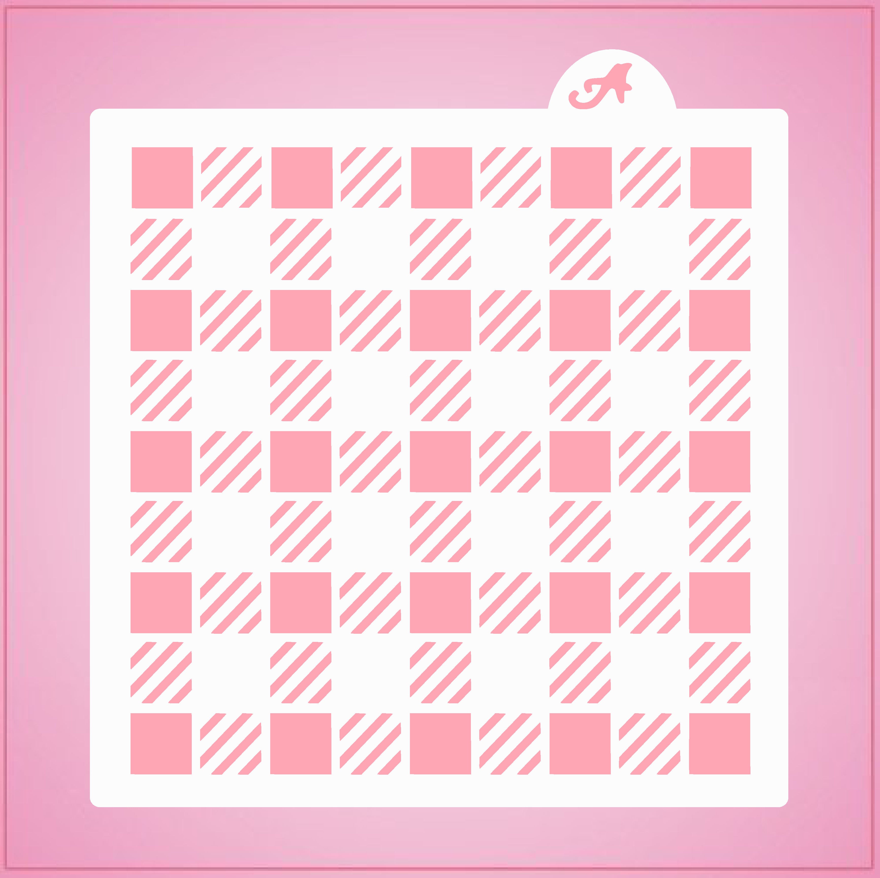 Our Buffalo Plaid Cookie Stencil is made on a 5.5" x 5.5" template. This is a great pattern stencil for decorating all sorts of cookie themes like winter, country decor and Christmas!