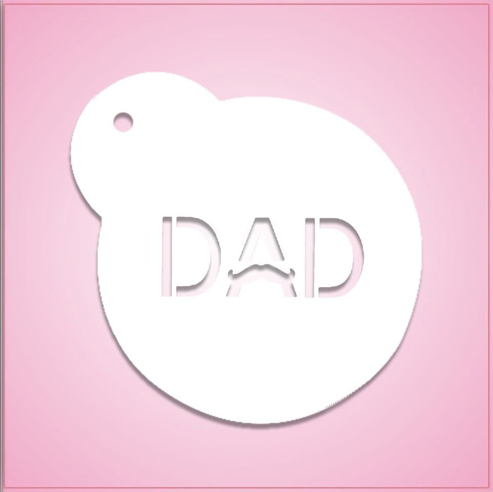 Celebrate your dad! Our DAD Mustache Cookie Stencil features the word DAD with handlebar mustache details. The word dad measures 2 inches wide x .80 inches tall. Perfect for decorating Father’s Day and dad’s birthday cookies, too!