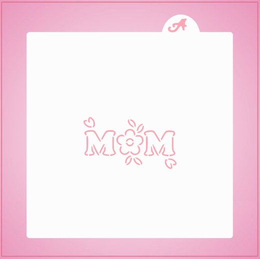 Our Garden Mom PYO Cookie Stencil features the word MOM with a pretty flower and leaves. This design measures 2 1/2" W x 1 1/2" H and is made on a 5.5" x 5.5" template. Kids will love decorating these Mom Cookies for Mother's Day and birthdays.