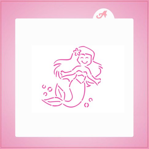 Our Mermaid Paint Your Own Cookie Stencil is made on a 5.5" x 5.5" template. This design measures about 2.8" W and features a pretty mermaid with a starfish barrette in her long hair and a swishing tail! Kids of all ages will love painting these cookies!