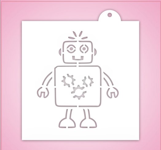 Our Robot Paint Your Own Cookie Stencil is made on a 5.5" x 5.5" template. A fun PYO cookie stencil design for decorating birthday cookies and more!