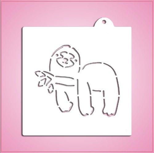 Our Sleepy Sloth Paint Your Own Cookie Stencil is designed for a 3.5 inch by 3.5 inch space and is made on a 5.5 inch x 5.5 inch template. This PYO design features a Sloth resting on a tree branch. A fun animal cookie stencil for birthday parties and more!