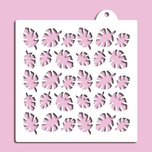 The stencil part of this Tropical Leaf Set stencil is 5 inches tall, 5 inches wide so ideal with our 5 inch square. Our stencils are 5 mil thickness which is ideal for decorating cookies. They are also made of a food safe plastic. Cleaning instructions: hand wash, towel dry. Buy yours today!