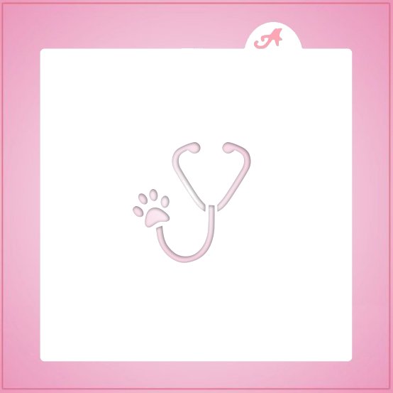 Our Vet Stethoscope Cookie Stencil features a paw print for the chest piece. The design measures 2 inches in diameter and is available in two template sizes. Use this medical cookie stencil for decorating Veterinarian themed cookies, animal care treats, and more!