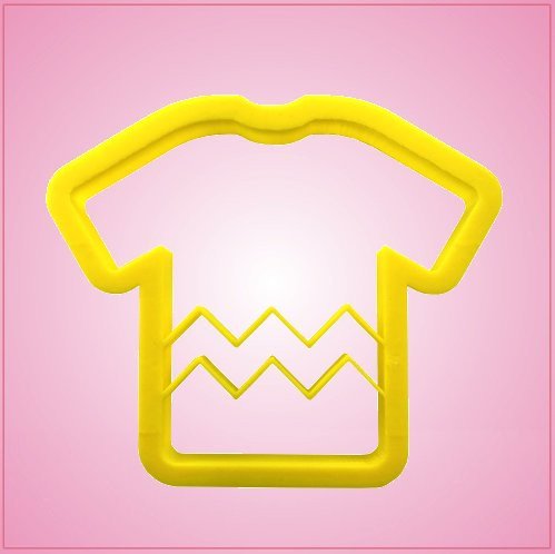 Our Chevron Shirt cookie cutters are 3-1/2 inches tall, just over 4 inches wide, and are made of yellow plastic. Cleaning instructions: hand wash, towel dry. Buy your chevron shirt cookie cutter today!