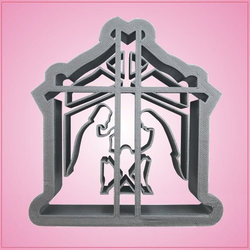 Our Manger Scene cookie cutters are 3-3/4 inches tall, 3-1/2 inches wide, and are made of gray plastic. Cleaning instructions: hand wash, towel dry. Buy your manger scene cookie cutter today!