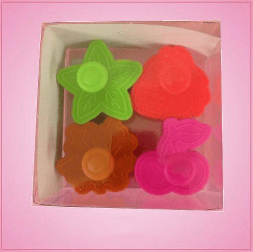 Yes, fruit is healthy for you, but you deserve a sweet treat every now and then! You can make some fruity fun goodies with this Plunger Style Fruit Cookie Cutter Set! The set includes four colorful plunger cutters: a 1-3/4-inch by 1-3/4-inch strawberry, a 1-1/2-inch by 1-1/2-inch cherry, a 2-inch by 2-inch star-shaped leaf and a 1-3/4-inch by 1-3/4-inch regular leaf. Cleaning instructions: wash by hand, towel dry. Order today!