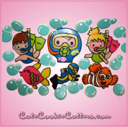 Our Simon Snorkel Boy measures approximately 3-1/2" tall, by 3-1/2" wide, depth 3/4" and made out of pink plastic. Cleaning instructions: hand wash, towel dry. Buy your Pink Simon snorkel boy cookie cutter today!